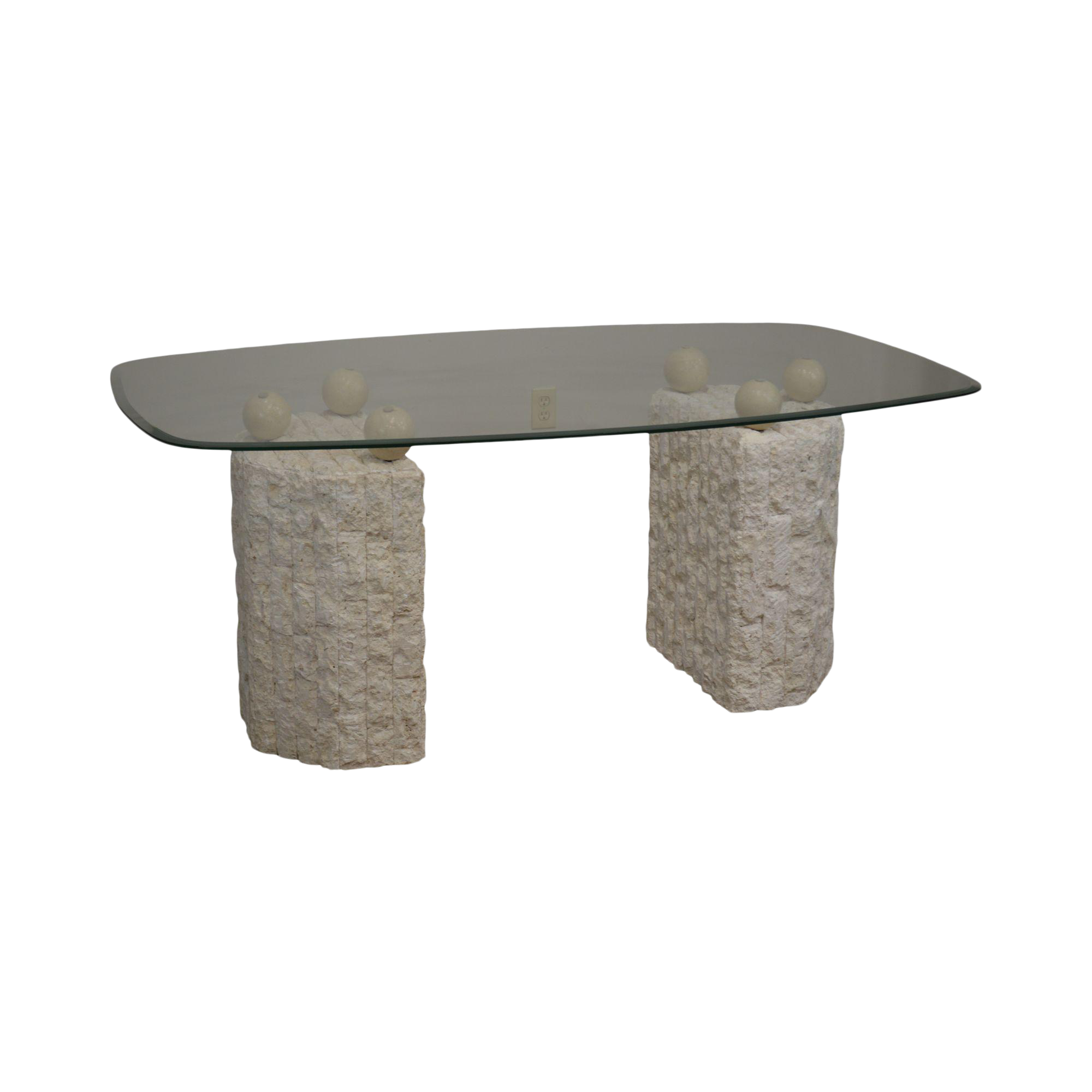 Postmodern Tessellated Marble Double Pedestal Glass Top Dining Table Chairish